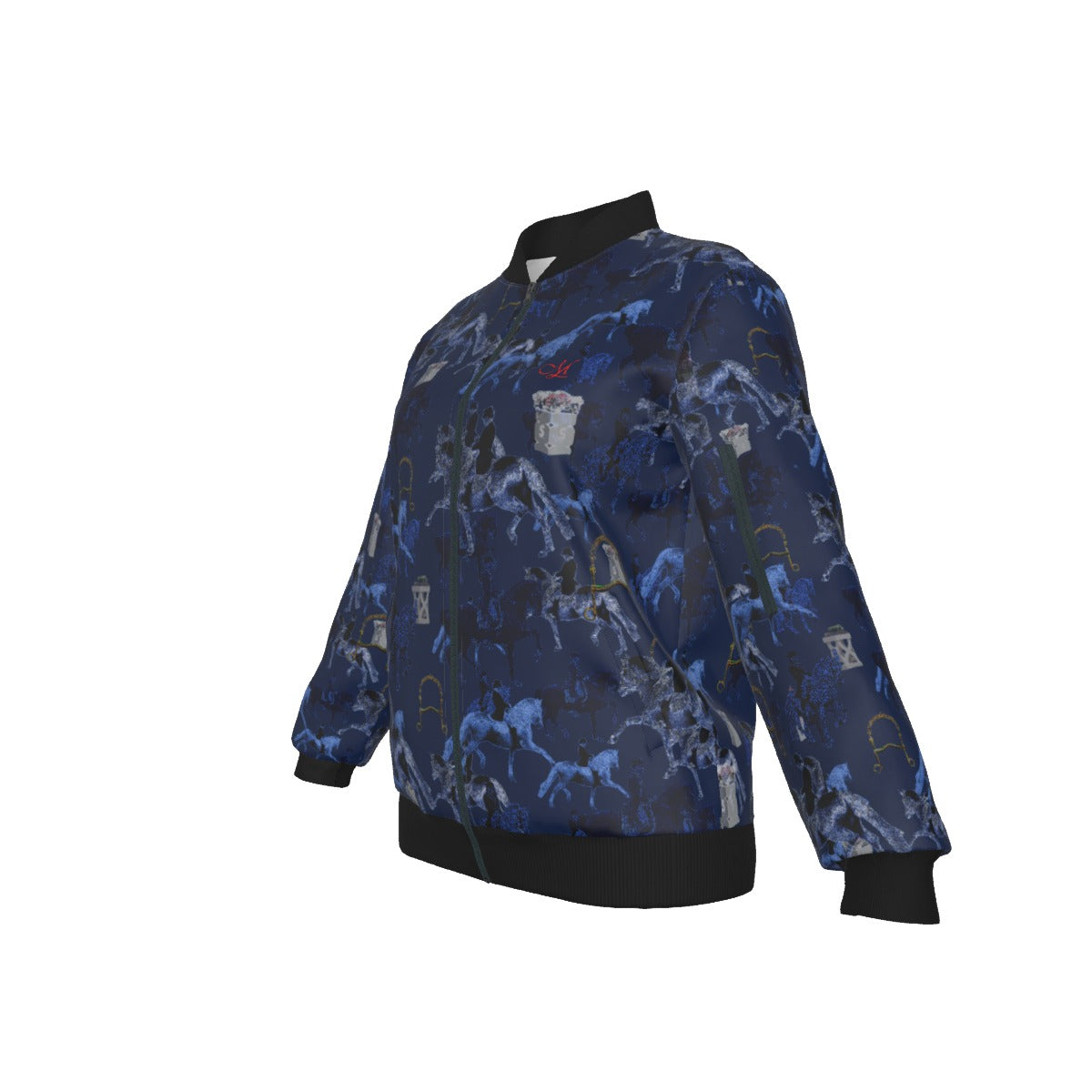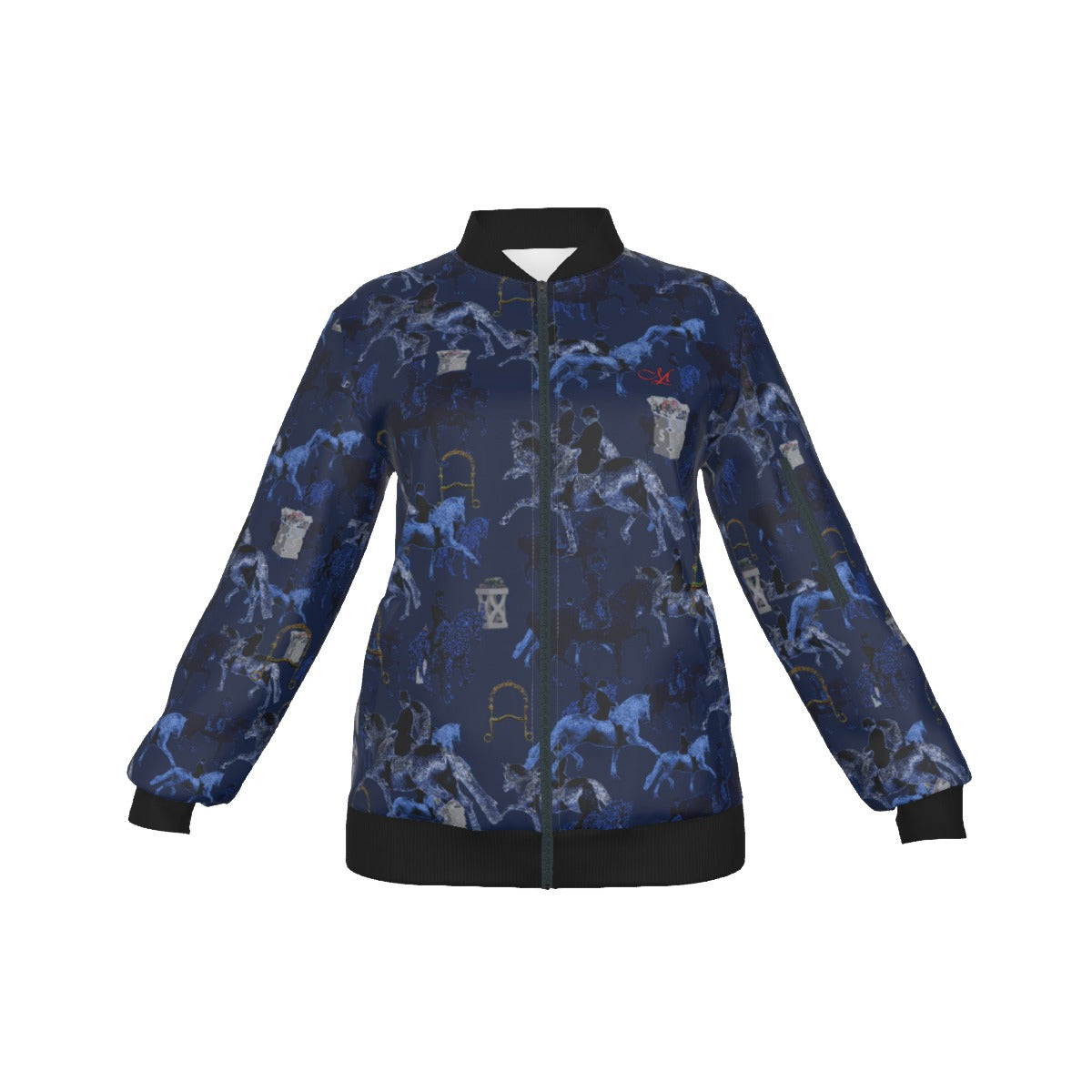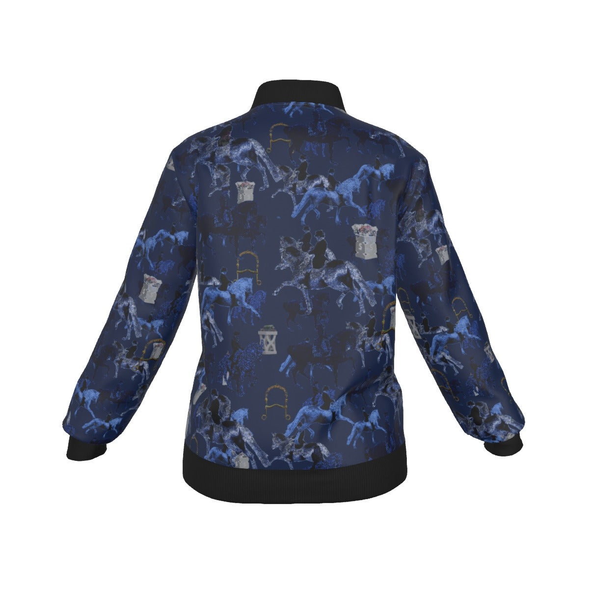 Son imprimé discret de silhouettes de chevaux sur fond bleu nuit apporte une touche équestre raffinée, tandis que sa coupe féminine sublime la silhouette tout en laissant une aisance de mouvement, que vous soyez à l’écurie ou en ville.