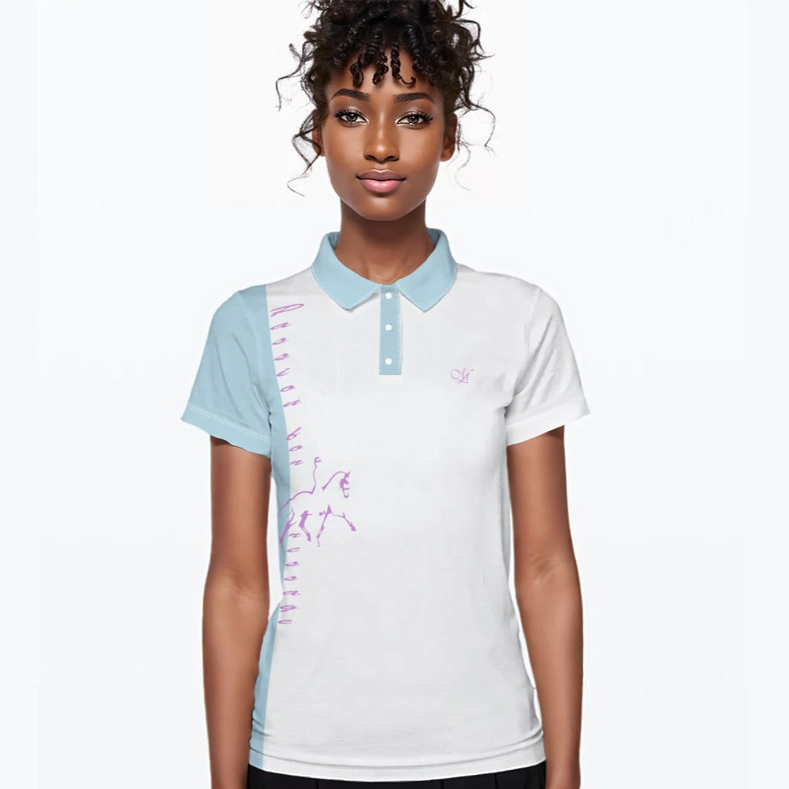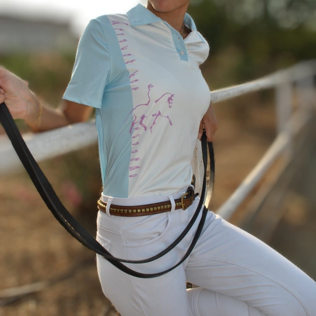 Exprimez votre passion équestre avec élégance grâce à ce polo PASSION, alliant confort, technicité et style raffiné. Son design pastel avec impression cheval et lettrage “dressage” apporte une touche féminine discrète, tandis que sa signature Loria Manuel sous le col souligne son exclusivité.