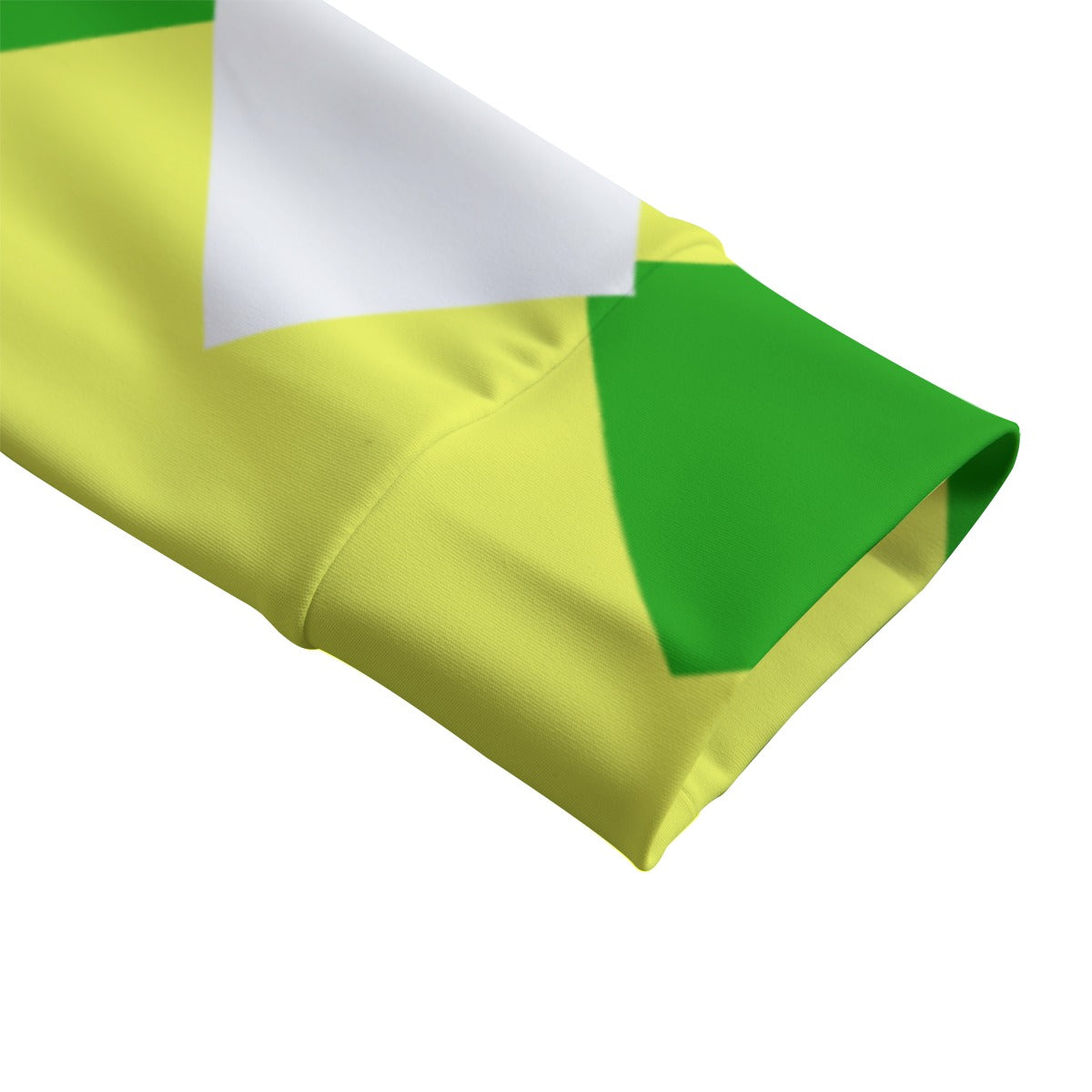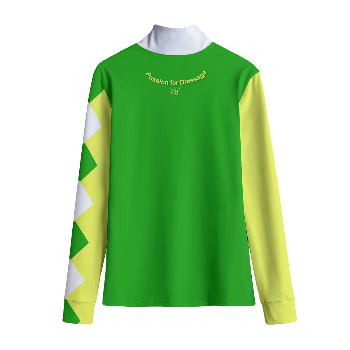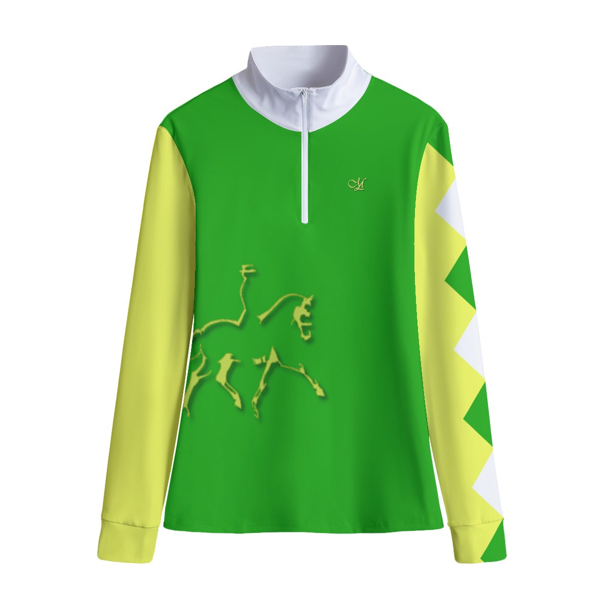 Affichez votre passion avec audace grâce à ce sweat-shirt aux couleurs vives, mêlant un vert pomme rafraîchissant et un jaune paille lumineux, rehaussé d’un damier moderne sur la manche droite. Un cheval stylisé discret sur le côté gauche rappelle votre attachement à l’élégance équestre tout en affirmant votre style.